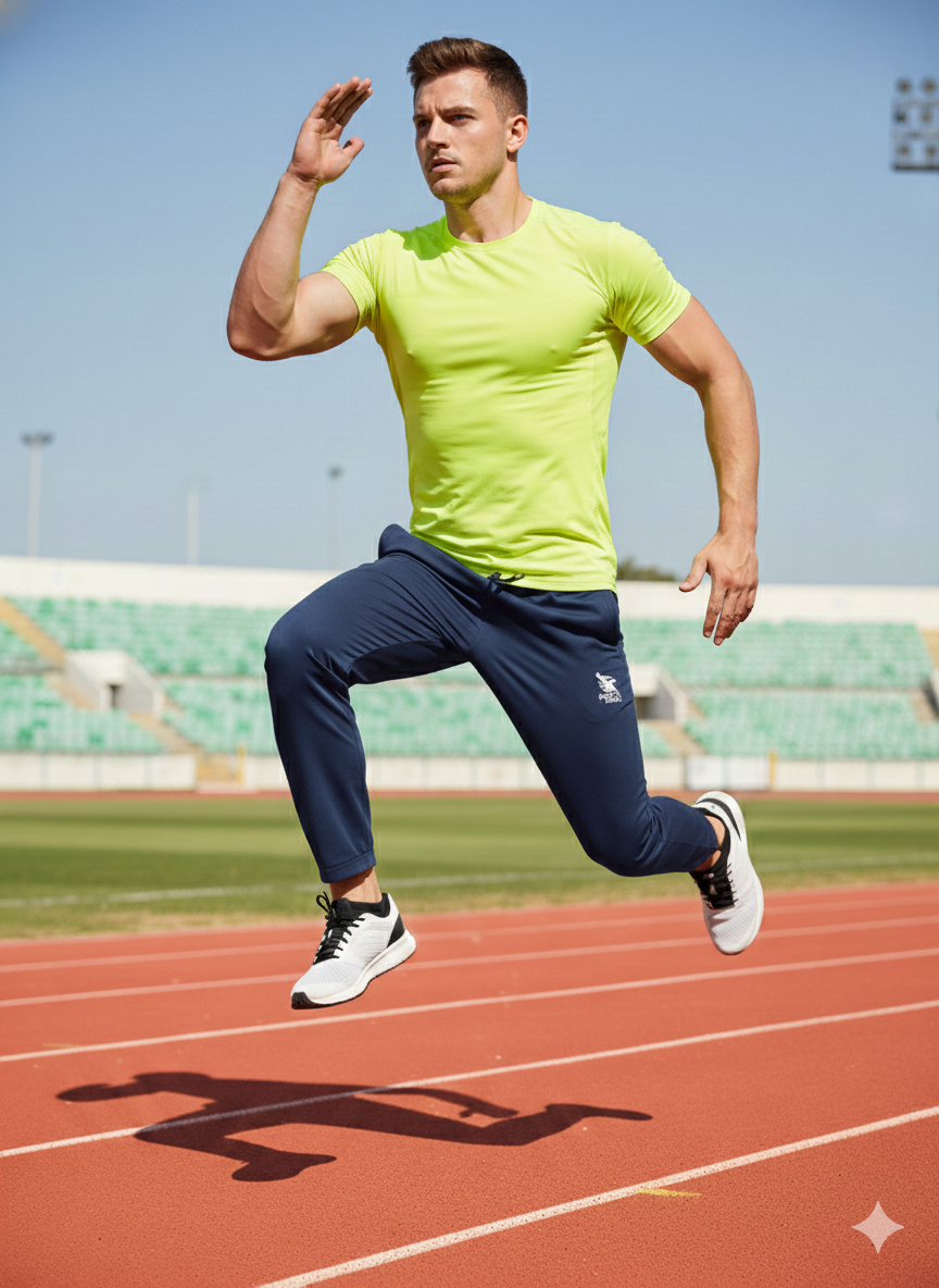 Men’s stylish sports track pants elastic waistband aur drawstring ke saath. Side zip pocket aur “Sports Rider” logo design, gym aur daily wear ke liye perfect.